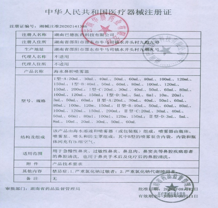 致好海水鼻腔噴霧器由海水溶液和噴霧器(或包裝瓶)組成,噴霧器由瓶體、噴霧泵、噴頭和防塵罩組成。用于急慢性鼻炎、過敏性鼻炎、鼻息肉、鼻竇炎等鼻腔疾病患者的鼻腔淸洗,也用于鼻炎手術(shù)后及化療后的鼻腔淸洗。