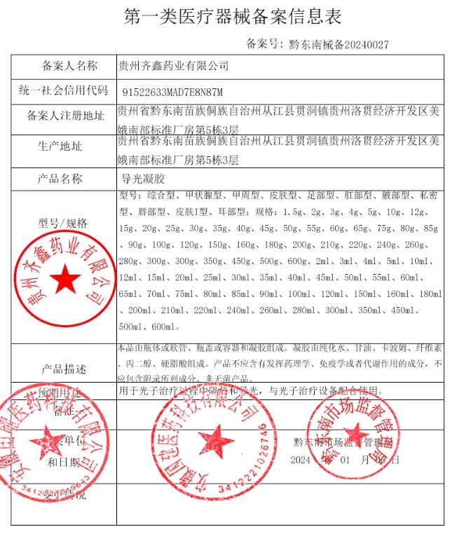 更多相關(guān):導(dǎo)光凝膠 貴州齊鑫藥業(yè)