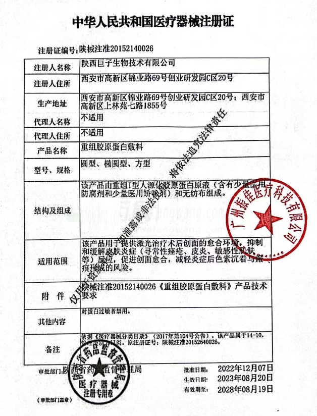 可復(fù)美重組膠原蛋白敷料用于提供激光治療術(shù)后創(chuàng)面的愈合環(huán)境,抑制和緩解皮膚炎癥(尋常性痤瘡、皮炎、敏感性肌膚等)反應(yīng),促進(jìn)創(chuàng)面愈合,減輕炎癥后色素沉著與瘢痕形成的風(fēng)險。