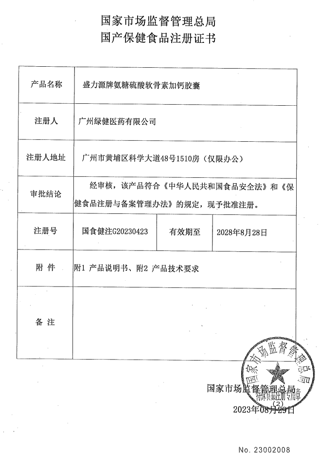 盛力源牌氨糖硫酸軟骨素加鈣膠囊保健功能:本品經(jīng)動物實驗評價,具有有助于改善骨密度的保健功能;適宜人群:中老年人;不適宜人群:少年兒童、孕婦、乳母。每日2次,每次2粒,口服。本品不能代替藥物。適宜人群外的人群不推薦食用本產(chǎn)品。