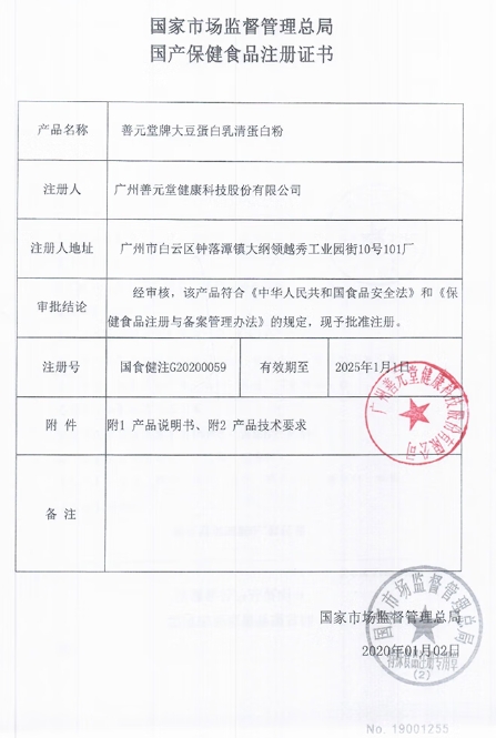 阿斯尤安善元堂牌大豆蛋白乳清蛋白粉保健功能:本品經(jīng)動(dòng)物實(shí)驗(yàn)評(píng)價(jià),具有增強(qiáng)免疫力的保健功能;適宜人群:免疫力低下者;不適宜人群:嬰幼兒、孕婦、乳母。每日1次,每次10g,沖服。本品補(bǔ)充了蛋白質(zhì),與同類產(chǎn)品同時(shí)食用不宜超過(guò)推薦量。