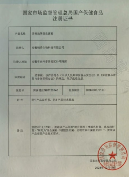 維諾健常維効牌益生菌粉保健功能:有助于增強免疫力、有助于調(diào)節(jié)腸道菌群(經(jīng)動物實驗評價,具有有助于增強免疫力的功能 );適宜人群:免疫力低下者、腸道功能紊亂的少年兒童;不適宜人群:嬰幼兒、孕婦、乳母。每日1次,每次1袋,沖食。