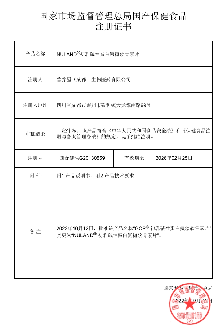 生命港灣NULAND初乳堿性蛋白氨糖軟骨素片保健功能:本品經(jīng)動(dòng)物實(shí)驗(yàn)評(píng)價(jià),具有增加骨密度、增強(qiáng)免疫力的保健功能;適宜人群:中老年人、免疫力低下者;不適宜人群:少年兒童、孕婦、乳母。每日2次,每次2片,口服。本品不能代替藥物。適宜人群外的人群不推薦食用本產(chǎn)品。