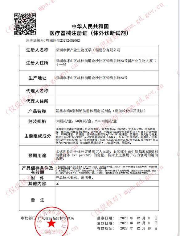 注冊(cè)證號(hào):粵械注準(zhǔn)20232402062批件 生產(chǎn)廠家:深圳市新產(chǎn)業(yè)生物醫(yī)學(xué)工程股份有限公司