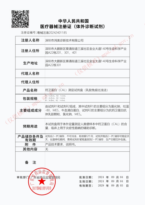 更多相關(guān):鈣衛(wèi)蛋白測(cè)定試劑盒 深圳市鴻美診斷 鈣衛(wèi)蛋白(CAL)測(cè)定試劑盒