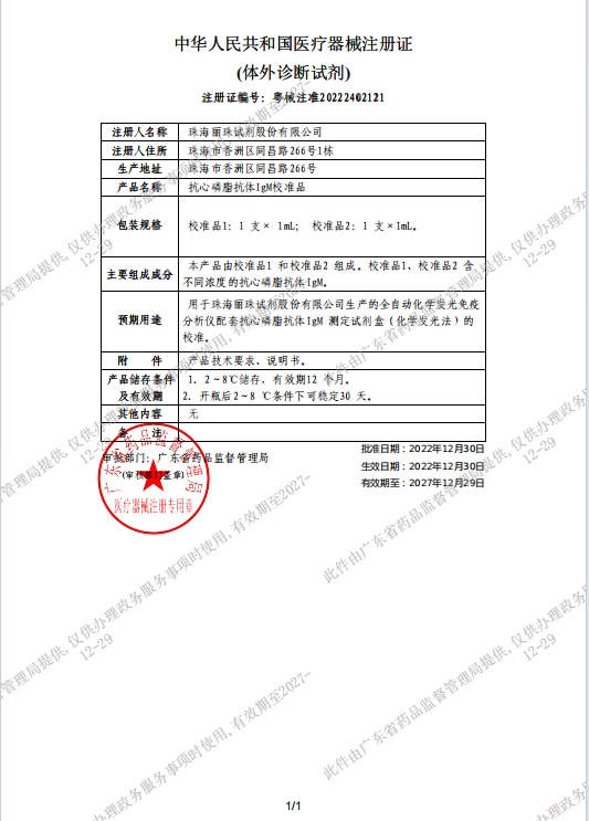 抗心磷脂抗體IgM校準(zhǔn)品價格對比 珠海麗珠