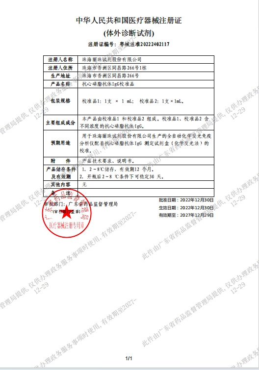 注冊證號:粵械注準(zhǔn)20222402117批件 生產(chǎn)廠家:珠海麗珠試劑股份有限公司