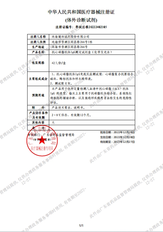 抗心磷脂抗體IgG測定試劑盒價格對比 珠海麗珠