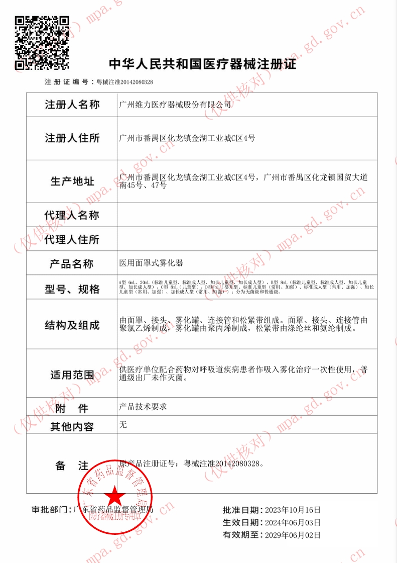注冊證號:粵械注準(zhǔn)20142080328批件
