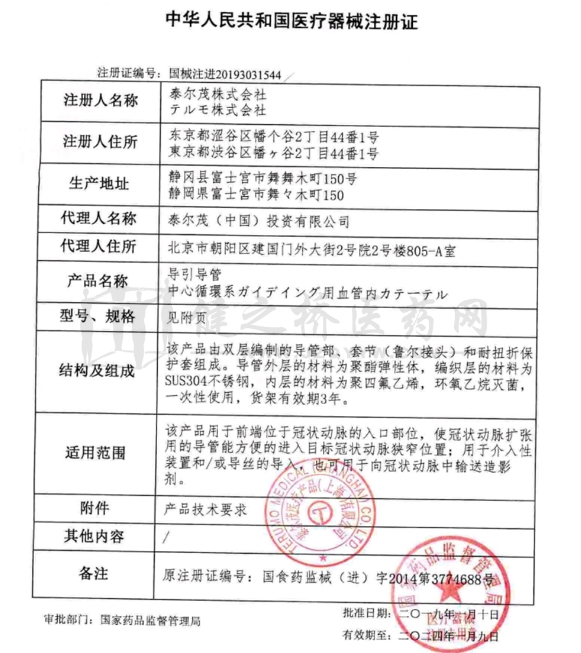 注冊人名稱:泰爾茂株式會社テルモ株式會社