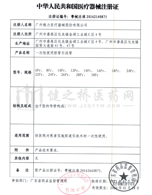 • 【產(chǎn)品名稱】一次性使用膽管引流管