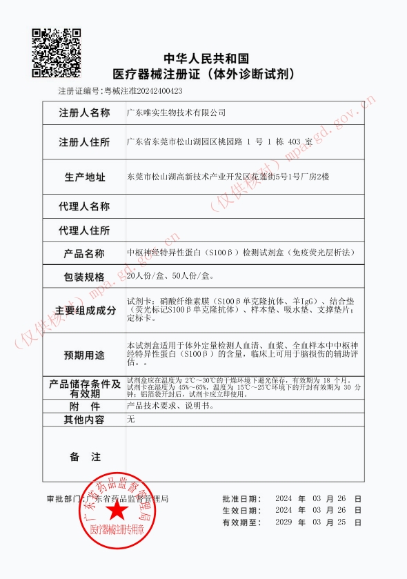 更多相關(guān):廣東唯實(shí) 中樞神經(jīng)特異性蛋白(S100β)檢測(cè)試劑盒