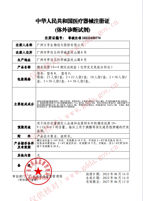 注冊證號:粵械注準(zhǔn)20222400774批件 生產(chǎn)廠家:廣州萬孚生物技術(shù)股份有限公司