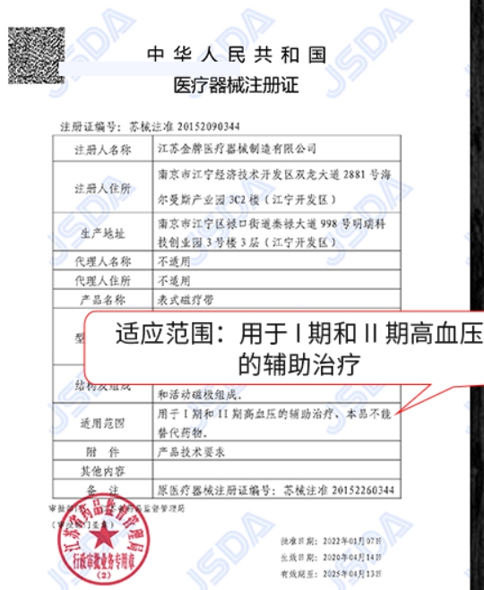 表式磁療帶(大醫(yī)生/壓寧)是由表殼、表芯、表帶及固定磁極和活動(dòng)磁極組成。用于I期和II期高血壓的輔助治療,本品不能替代藥物。在使用表式磁療帶前,請(qǐng)認(rèn)真閱讀說(shuō)明書(shū)。