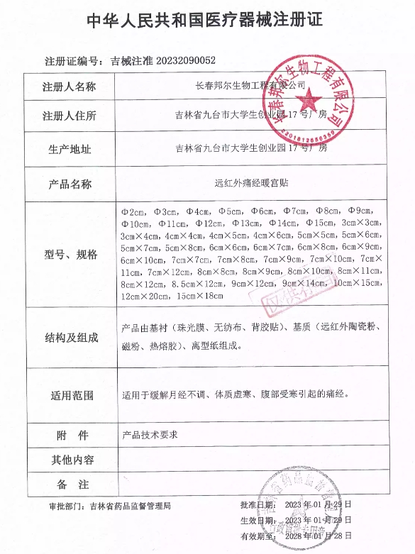 仁和遠(yuǎn)紅外痛經(jīng)暖宮貼適用于緩解月經(jīng)不調(diào)、體質(zhì)虛寒、腹部受寒引起的痛經(jīng)。清潔皮膚,揭掉本品的保護(hù)膜,貼敷氣海穴(臍下)位置,每日一貼。對(duì)本品過敏者禁用。出血及有出血傾向者禁用。使用部位有感染、開放性傷口、皮膚病者禁用。皮膚感覺障礙者,嬰幼兒禁用。