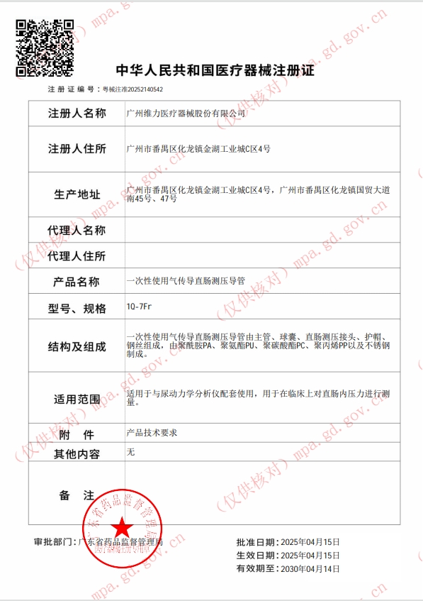 注冊(cè)證號(hào):粵械注準(zhǔn)20252140542批件 生產(chǎn)廠家:廣州維力醫(yī)療器械股份有限公司