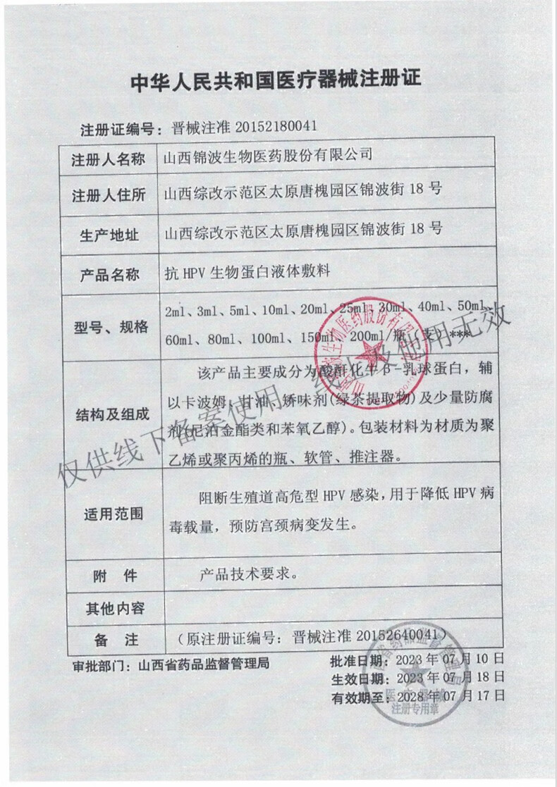 更多相關(guān):抗HPV生物蛋白液體敷料 錦平