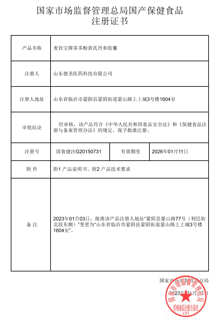 國藥藥材麥旨寶牌茶多酚黃芪丹參膠囊保健功能:增強免疫力、輔助降血脂(經(jīng)動物實驗評價,具有增強免疫力的保健功能);適宜人群:免疫力低下者、血脂偏高者;不適宜人群:少年兒童、孕婦、乳母。每日2次,每次4粒,口服。本品不能代替藥物。適宜人群外的人群不推薦食用本產(chǎn)品。