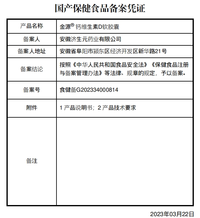 批準(zhǔn)文號(hào):食健備G202334000814批件 生產(chǎn)廠家:安徽濟(jì)生元藥業(yè)有限公司
