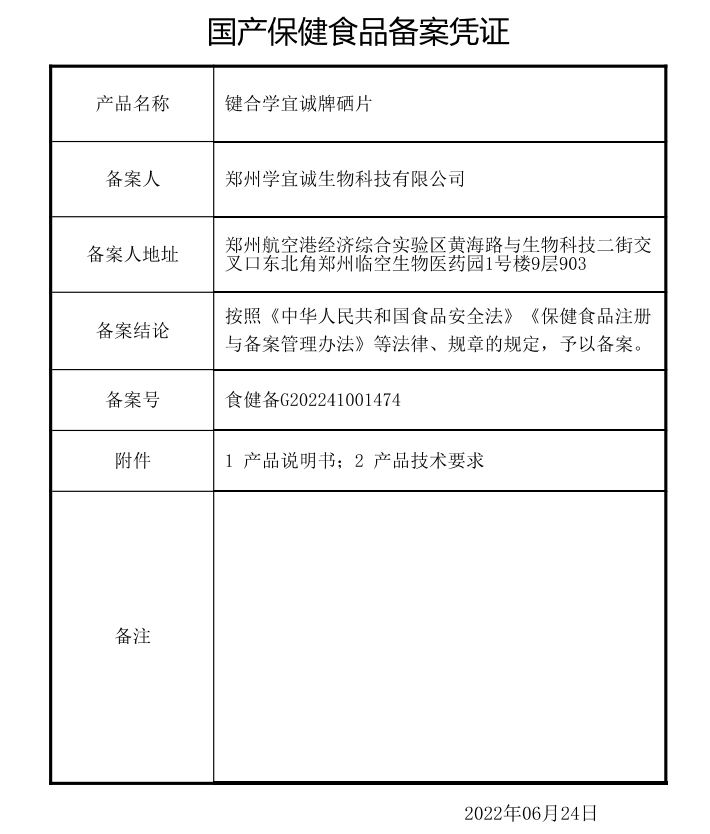 鍵合學宜誠牌硒片保健功能:補充硒;適宜人群:需要補充硒的成人;不適宜人群:17歲以下人群及孕婦、乳母。每日1次,每次1片;食用方法:口服。本品不能代替藥物。適宜人群外的人群不推薦食用本產品。不宜超過推薦量或與同類營養(yǎng)素同時食用。高硒地區(qū)人群不宜食用。