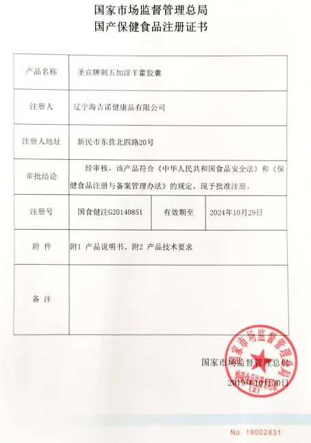 君盛強(qiáng)圣宣牌刺五加淫羊藿膠囊保健功能:本品經(jīng)動物實(shí)驗(yàn)評價,具有緩解體力疲勞、增強(qiáng)免疫力的保健功能;適宜人群:易疲勞者、免疫力低下者;不適宜人群:少年兒童、孕婦、乳母。每日2次,每次3粒,口服。本品不能代替藥物;適宜人群外的人群不推薦食用。