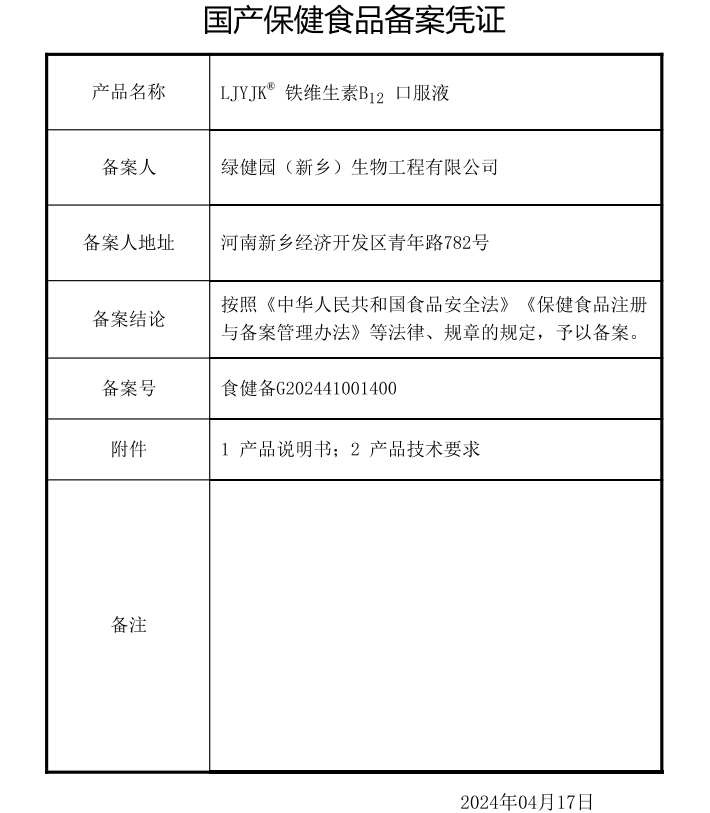 更多相關(guān):綠健園 LJYJK 鐵維生素B12口服液
