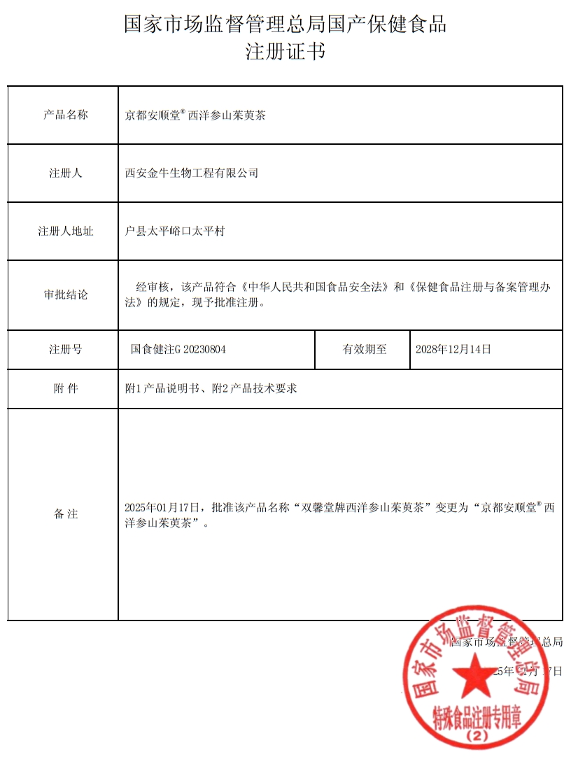 京都安順堂西洋參山茱萸茶保健功能:有助于維持血糖健康水平;適宜人群:血糖偏高者;不適宜人群:少年兒童、孕婦、乳母。每日3次,每次1袋,開水沖泡后飲用。本品不能代替藥物。適宜人群外的人群不推薦食用本產(chǎn)品。