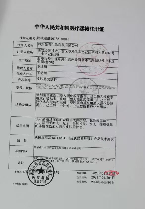 注冊證號:陜械注準(zhǔn)20182140041批件 生產(chǎn)廠家:西安惠普生物科技有限公司