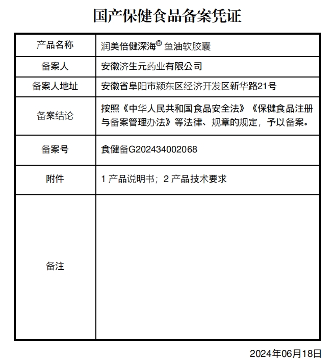 潤(rùn)美倍健深海魚油軟膠囊保健功能:有助于維持血脂健康水平;適宜人群:血脂偏高者;不保健功能:有助于維持血脂健康?平;適宜人群:血脂偏高者;不適宜人群:少年兒童、孕婦、乳母;出血傾向者和出血性疾病患者;肝功能不全者。每日2次,每次2粒;食用方法:溫開水送服。