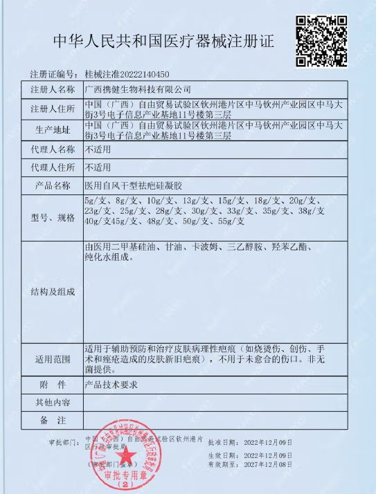 因斯博士醫(yī)用自風(fēng)干型祛疤硅凝膠由醫(yī)用二甲基硅油、甘油、卡波姆、三乙醇胺、羥苯乙酯、純化水組成。適用于輔助預(yù)防和治療皮膚病理性疤痕(如燒燙傷、創(chuàng)傷、手術(shù)和痤瘡造成的皮膚新舊疤痕),不用于未愈合的傷口。非無菌提供。