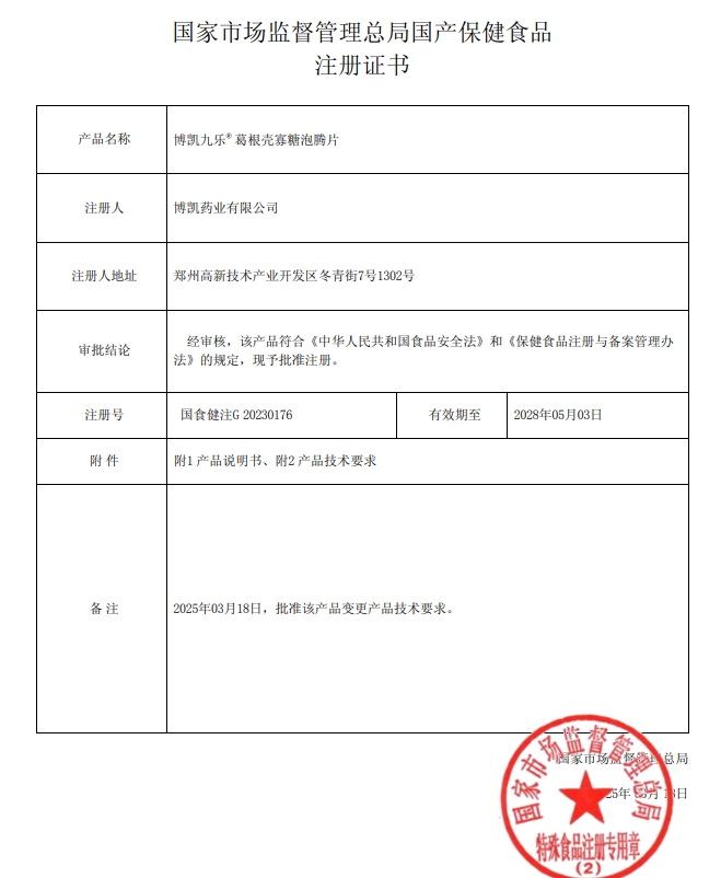 TOWATA博凱九樂葛根殼寡糖泡騰片保健功能:本品經(jīng)動物實驗評價,具有對化學(xué)性肝損傷有輔助保護作用的保健功能;適宜人群:有化學(xué)性肝損傷危險者;不適宜人群:少年兒童、孕婦、乳母。每日3次,每次1片,將產(chǎn)品放入200-250ml水中,待溶解后,直接飲用。本品不能代替藥物。