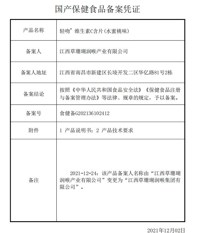 滋新輕吻維生素C含片(水蜜桃味)保健功能:補充維生素C;適宜人群:需要補充維生素C的4-17歲人群及成人、孕婦、乳母;不適宜人群:3歲以下人群。不宜超過推薦量或與同類營養(yǎng)素同時食用。