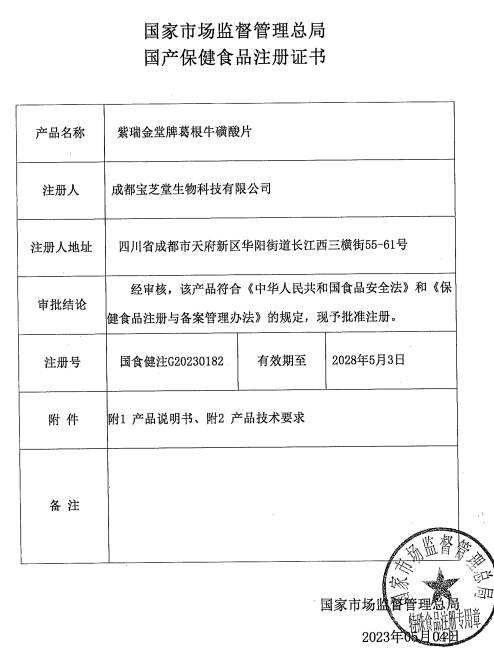 紫瑞金堂牌葛根牛磺酸片保健功能:本品經(jīng)動物實驗評價,具有對化學(xué)性肝損傷有輔助保護功能的保健功能;適宜人群:有化學(xué)性肝損傷危險者;不適宜人群:少年兒童、孕婦、乳母、花粉過敏者。每日1次,每次3片,口服。適宜人群外的人群不推薦食用本產(chǎn)品。