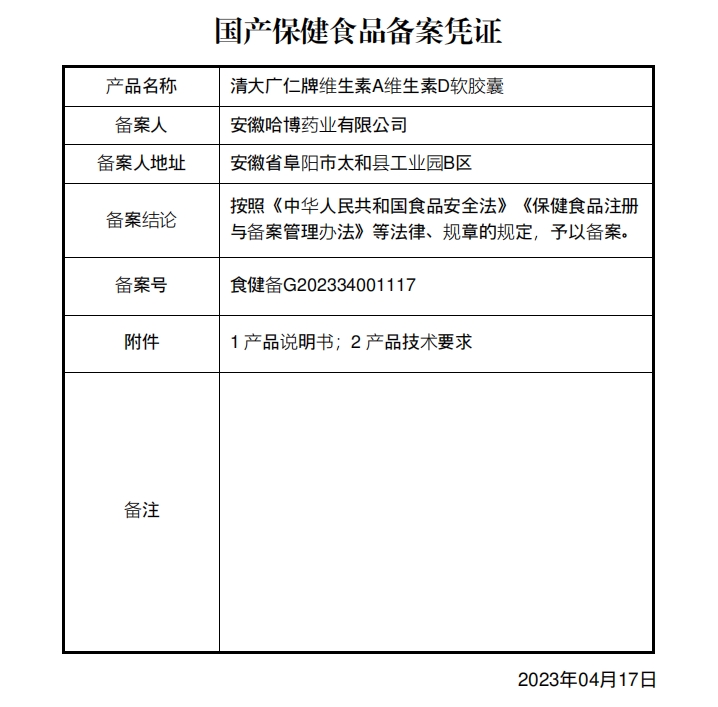 清大廣仁牌維生素A維生素D軟膠囊保健功能:補(bǔ)充維生素A、維生素D;適宜人群:需要補(bǔ)充維生素A、維生素D的4-17歲人群及成人;不適宜人群:3歲以下人群及孕婦、乳母。每日1次,每次2粒,食用方法:吞服;或?qū)⒛z皮剪開,擠出內(nèi)容物服用。本品不能代替藥物。