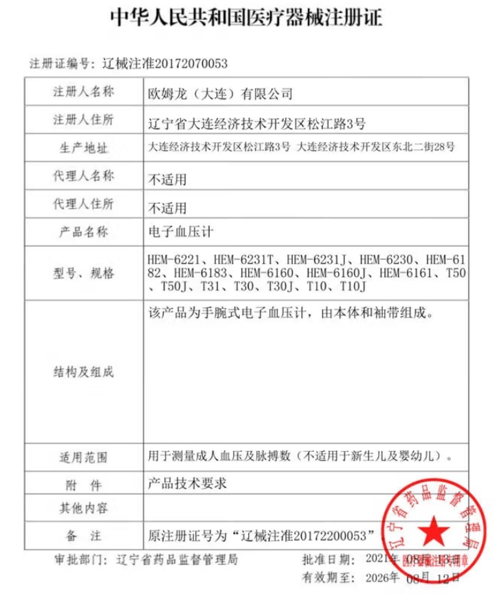 歐姆龍電子血壓計用于測量成人血壓及脈搏數(shù)(不適用于新生兒及嬰幼兒)。左手掌朝上,將袖帶纏繞在手腕上。袖帶位置距離手掌1cm~2cm,將袖帶沿著手腕的形狀緊密纏繞,準備完畢,開始測量。測量時將臂肘放在桌子上,將本體與心臟高度保持一致,手心向上,身體放松。