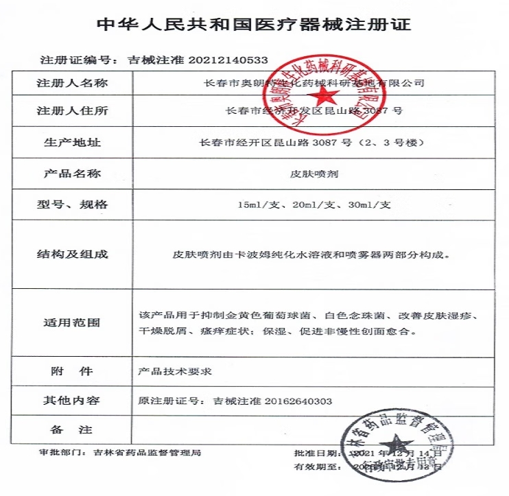 蕙妍堂皮膚噴劑用于抑制金黃色葡萄球菌、白色念珠菌、改善皮膚濕疹、干燥脫屑、瘙癢癥狀;保濕、促進非慢性創(chuàng)面愈合。將本品噴灑在患處,每日3次,每次4噴,10天為一療程。