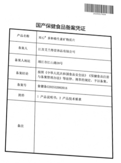 雙心多種維生素礦物質(zhì)片保健功能:補充多種維生素礦物質(zhì);適宜人群:需要補充多種維生素礦物質(zhì)的成人;不適宜人群:17歲以下人群及孕婦、乳母。每日1次,每次1片,食用方法:吞食。本品不能代替藥物。適宜人群外的人群不推薦食用本產(chǎn)品。不宜超過推薦量或與同類營養(yǎng)素同時食用。