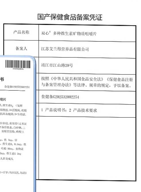 更多相關:多種維生素礦物質咀嚼片 雙心