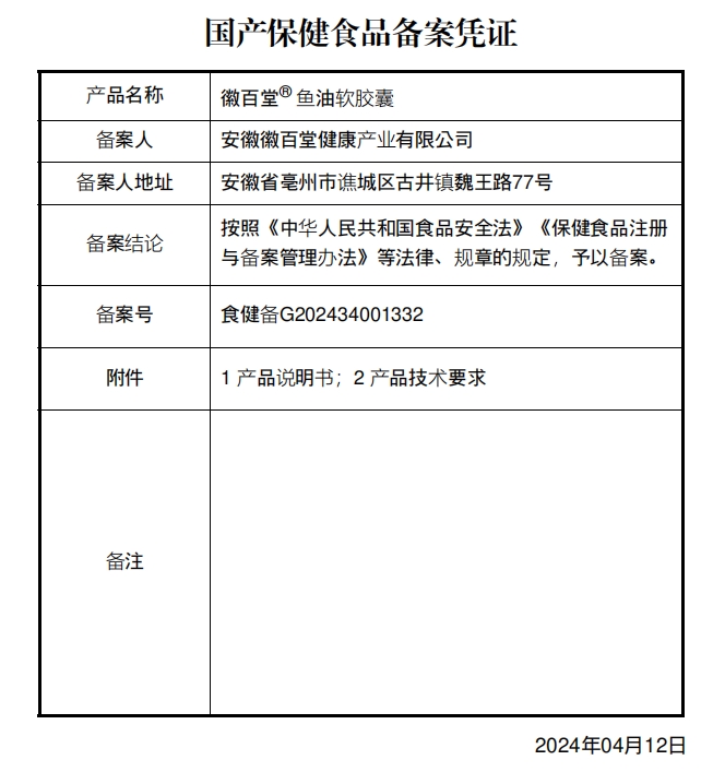 希可森徽百堂魚油軟膠囊保健功能:有助于維持血脂健康水平;適宜人群:血脂偏高者;不適宜人群:少年兒童、孕婦、乳母;出血傾向者和出血性疾病患者;肝功能不全者。每日2次,每次2粒,食用方法:口服,飯后溫開水送服。本品不能代替藥物。對海產(chǎn)品過敏者不推薦食用。