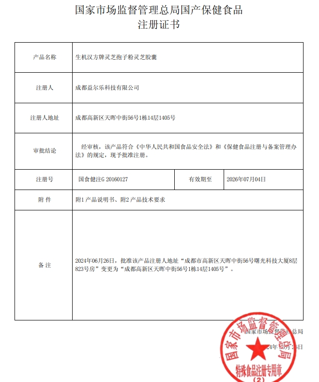 生機漢方牌靈芝孢子粉靈芝膠囊保健功能:本品經(jīng)動物實驗評價,具有有助于增強免疫力的保健功能;適宜人群:免疫力低下者;不適宜人群:少年兒童、孕婦、乳母。每日2次,每次4粒,口服。本品不能代替藥物。