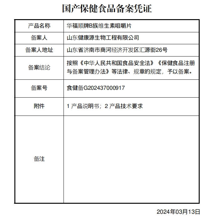力搏士華福順牌B族維生素咀嚼片保健功能:補充B族維生素;適宜人群:需要補充B族維生素的4-17歲人群及成人、孕婦、乳母;不適宜人群:3歲以下人群。每日1次,每次2片;食用方法:咀嚼食用。本品不能代替藥物;不宜超過推薦量或與同類營養(yǎng)素同時食用。