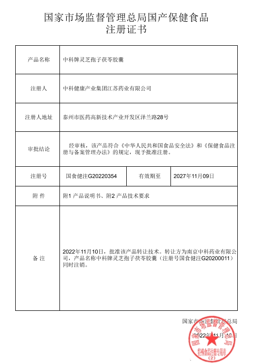 【批準文號】國食健注G20220354