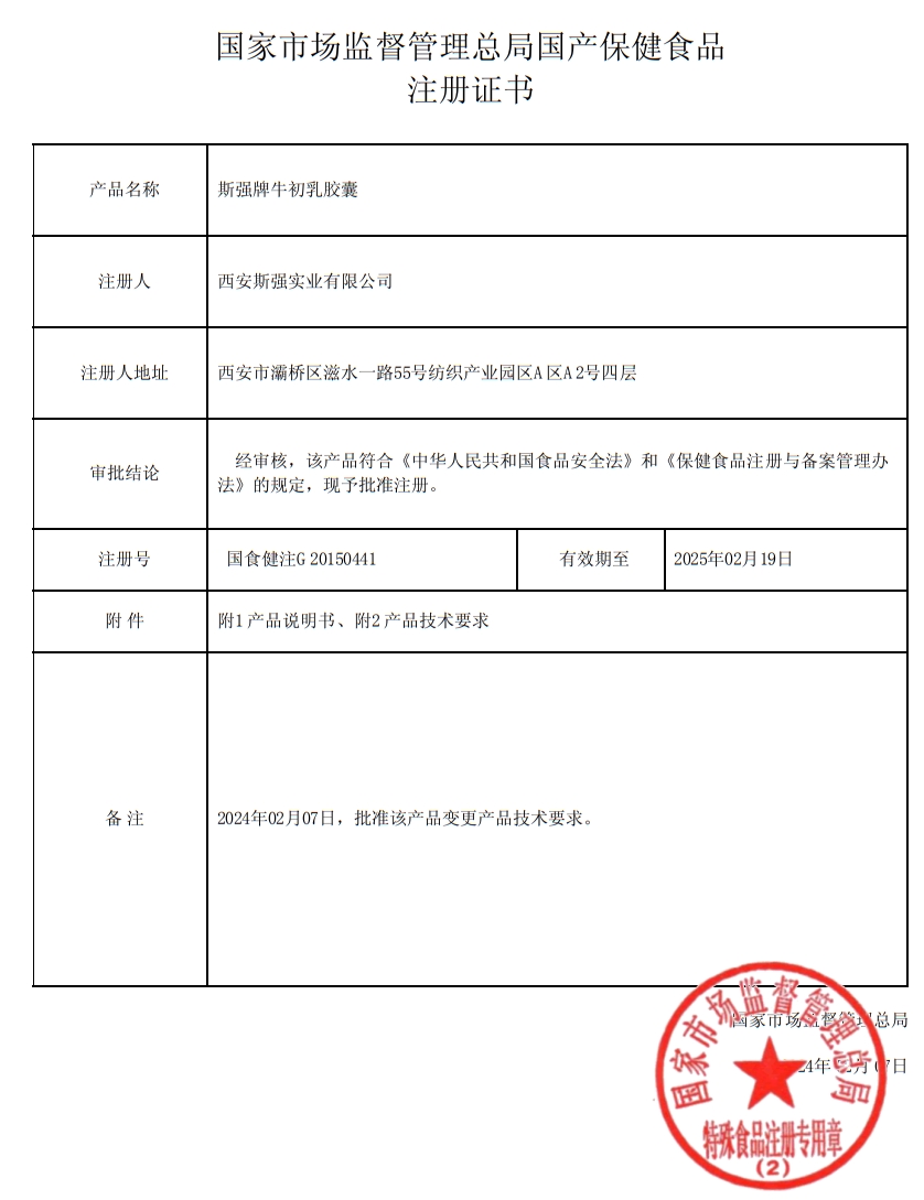 布蘭氏斯強(qiáng)牌牛初乳膠囊保健功能:本品經(jīng)動物實驗評價,具有增強(qiáng)免疫力的保健功能;適宜人群:免疫力低下者;不適宜人群:嬰幼兒、孕婦、乳母。每日2次,每次2粒,口服。本品不能代替藥物;適宜人群外的人群不推薦食用。
