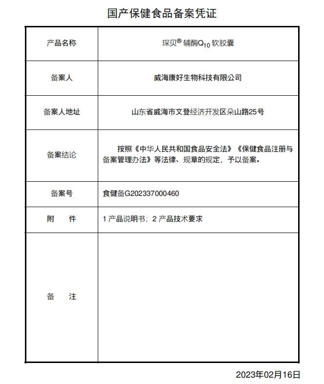 琛貝輔酶Q10軟膠囊保健功能:增強免疫力和抗氧化;適宜人群:成人;不適宜人群:少年兒童、孕婦、乳母、過敏體質人群。每日1次,每次1粒,食用方法:口服,飯后溫開水送服。本品不能代替藥物。適宜人群外的人群不推薦食用本產品。服用治療藥物的人群食用本品時應向醫(yī)生咨詢。