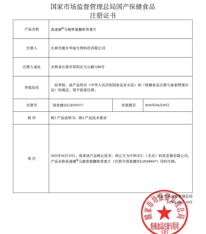 健效達(dá)易速健馬鹿骨氨糖軟骨素片保健功能:本品經(jīng)動物實驗評價,具有有助于改善骨密度的保健功能;適宜人群:中老年人;不適宜人群:少年兒童、孕婦、乳母。每日3次,每次3片,口服。本品不能代替藥物;適宜人群外的人群不推薦食用本產(chǎn)品。