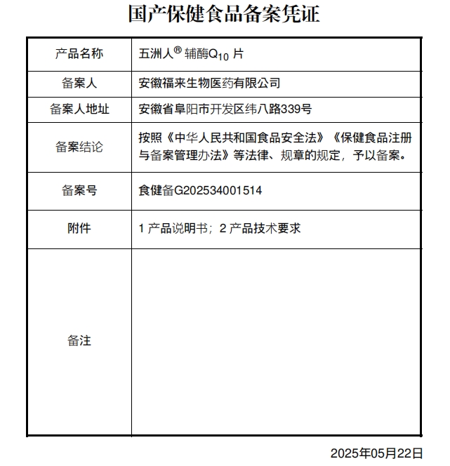 更多相關(guān):輔酶Q10片 五洲人 福來(lái)生物
